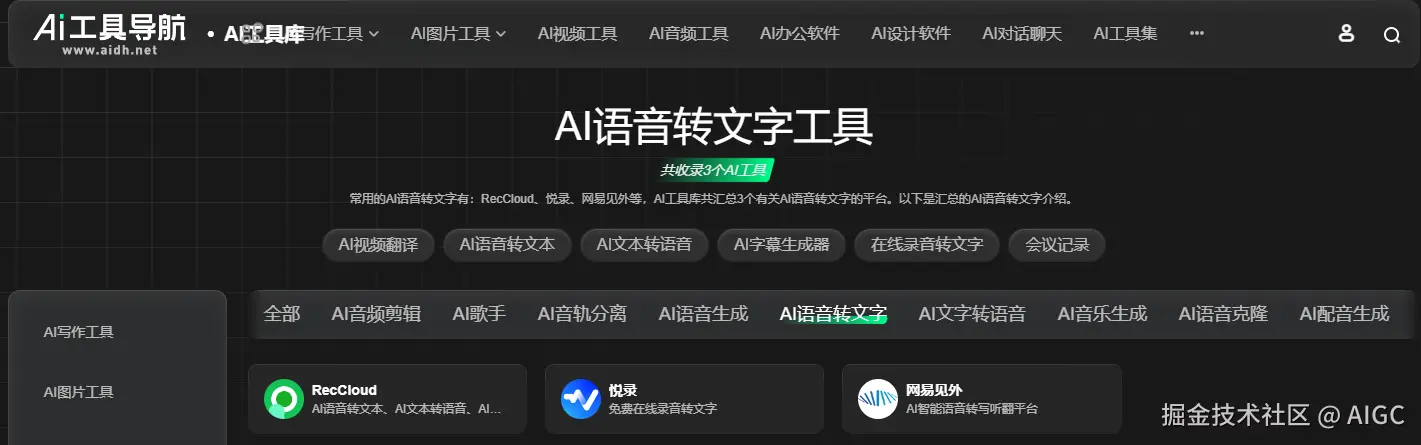 AI 工具导航平台AIDH.NET,为用户带来了更多的便利和丰富的资源。用户可以轻松找到LALAL.AI,同时还能发现一系列与之互补的工具。当用户使用LALAL.AI完成音频降噪或其他处理后,如果需要将音频内容转换为文字,AIDH.NET上的AI 语音转文字工具就能派上用场。它能够快速、准确地将处理后的清晰音频转换为文本,大大提高了会议纪要整理、字幕制作等工作的效率。