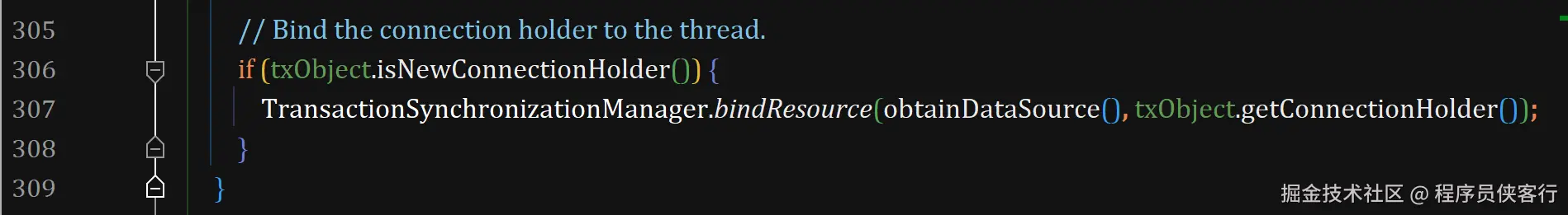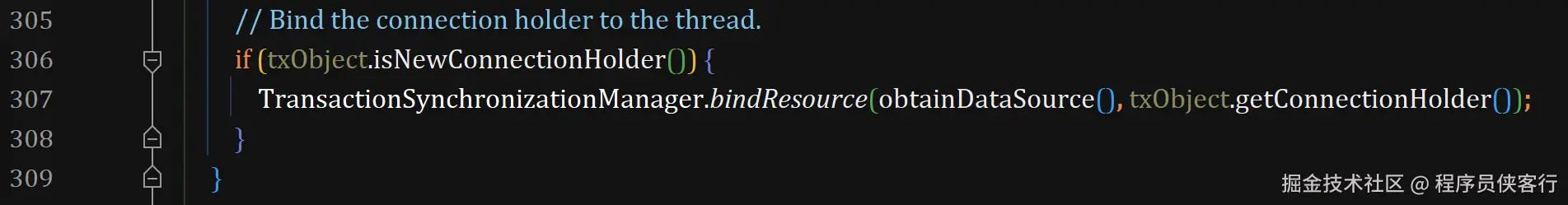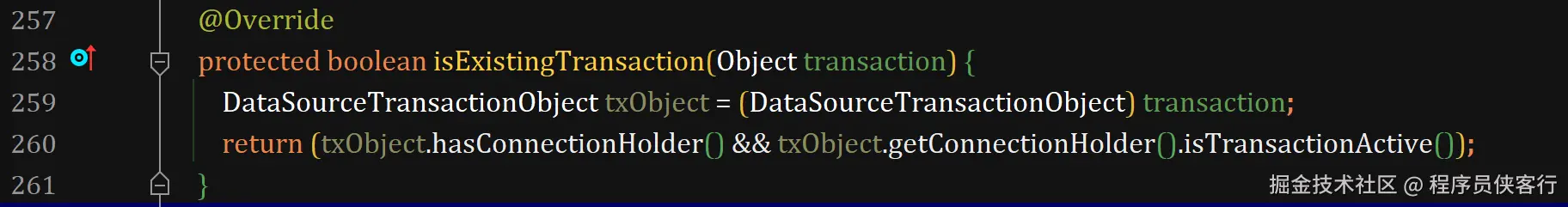- 当connectionHolder不为null且connectionHolder.transactionActive=ture时,说明已存在事务: