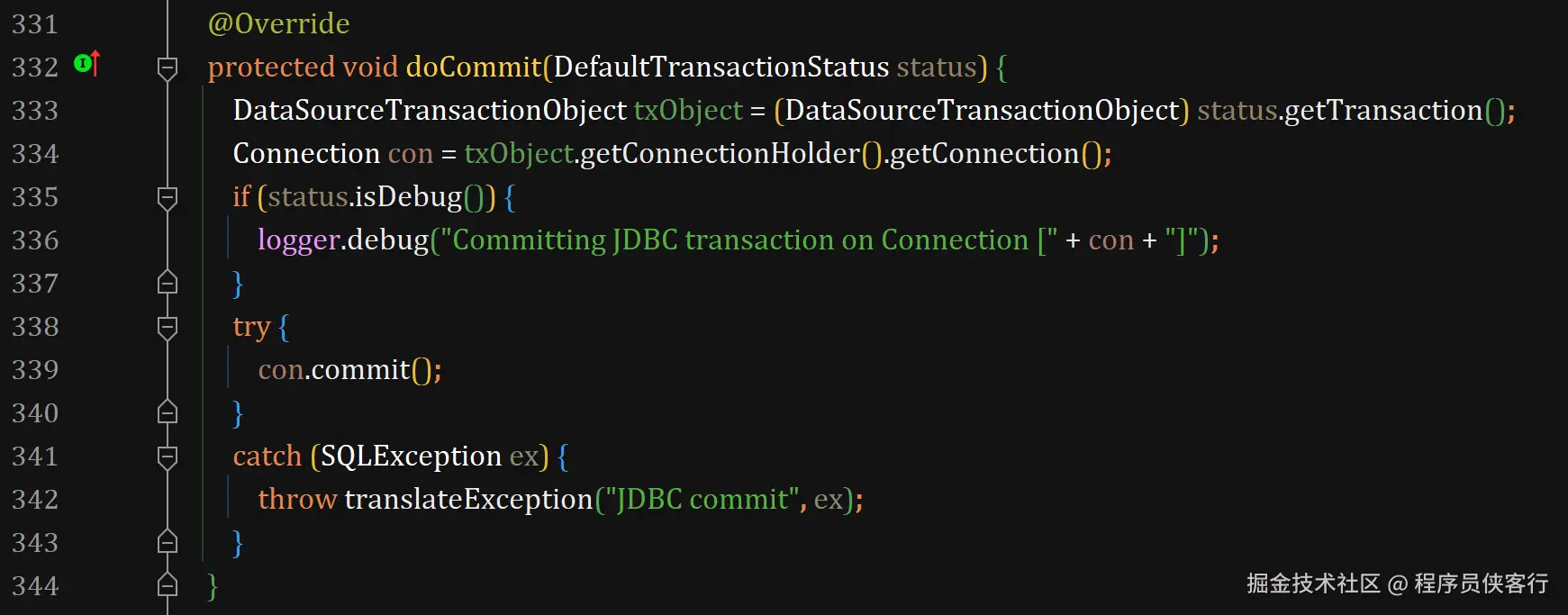 doCommit方法:从TransactionStatus中获取TransactionObject,拿到connection调用commit();