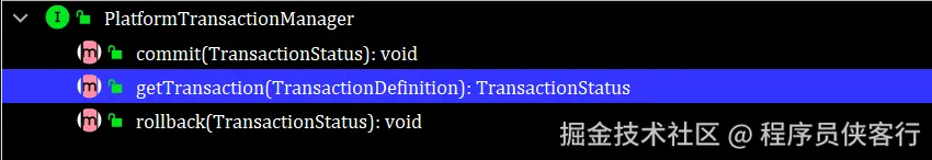 有抽象实现AbstractPlatformTransactionManager,其中定义了doGetTransaction、doBegin、doCommit、doRollback等抽象方法,待子类实现。