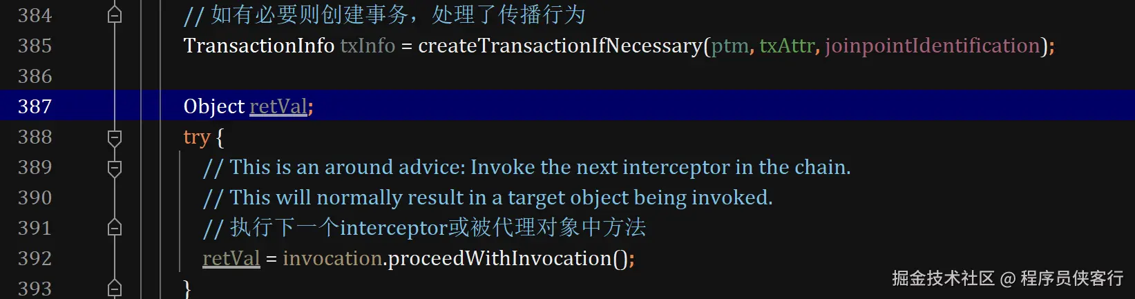 事务拦截器,就是AOP的代理逻辑,具体实现在TransactionAspectSupport#invokeWithinTransaction中。