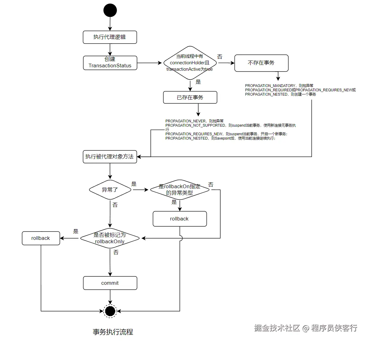 - 如果传播行为是PROPAGATION_REQUIRED、PROPAGATION_REQUIRES_NEW、PROPAGATION_NESTED,则开启事务