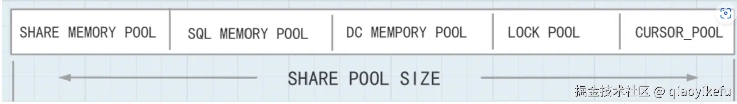 YashanDB 的实现也有些类似,在 Share Pool 内存在多个 POOL,如 SQL POOL,DC POOL,LOCK_POOL,CURSOR_POOL 等,