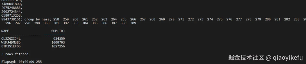 测试 SQL 为: