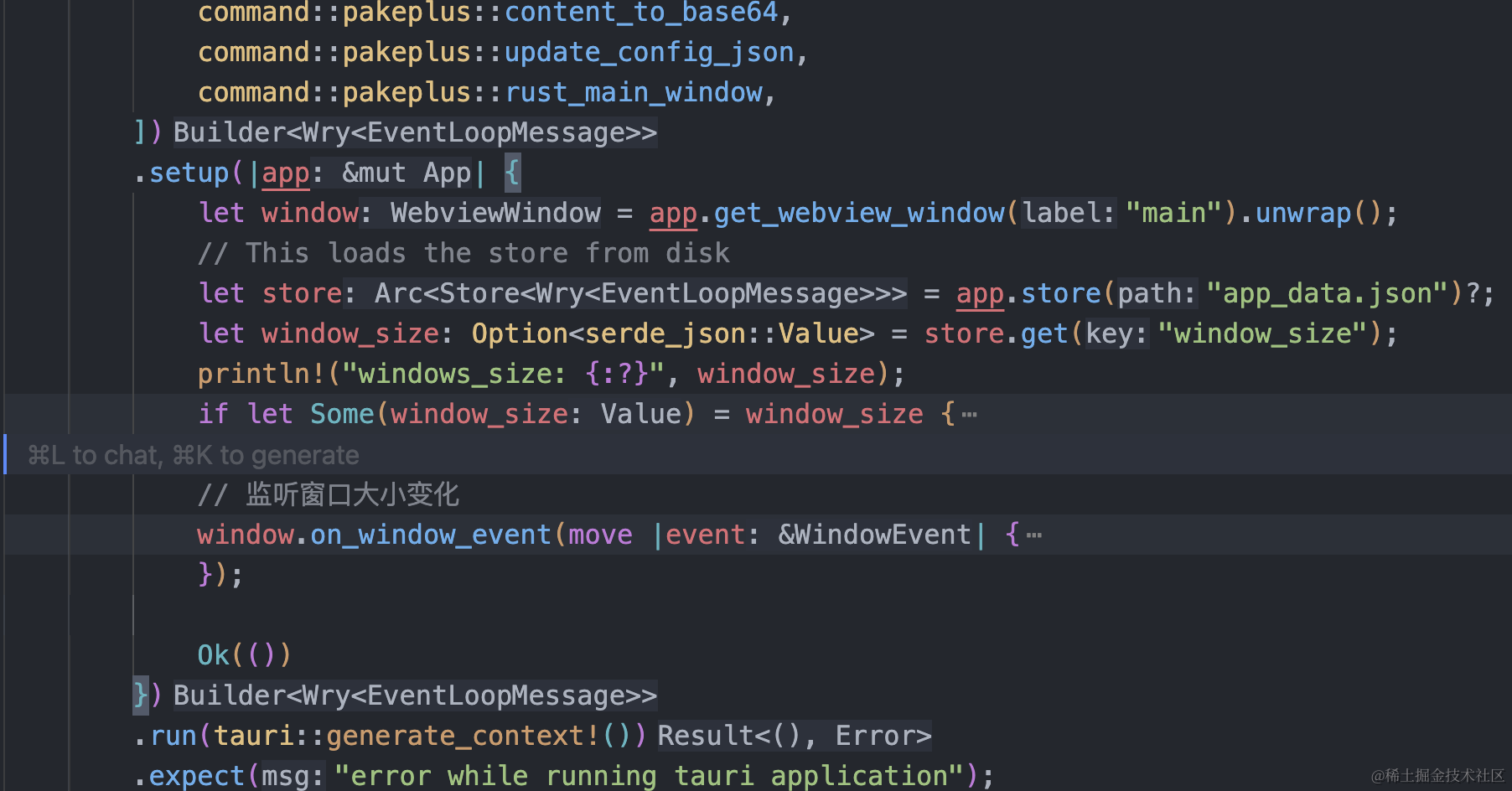 要想实现记住窗口大小的功能,整体逻辑就是要监听窗口大小变化,将窗口大小保存下来,重启之后,读取保存的大小,然后恢复。这里可以使用rust层实现,也可以在前端实现。我这里就纯rust层实现了。