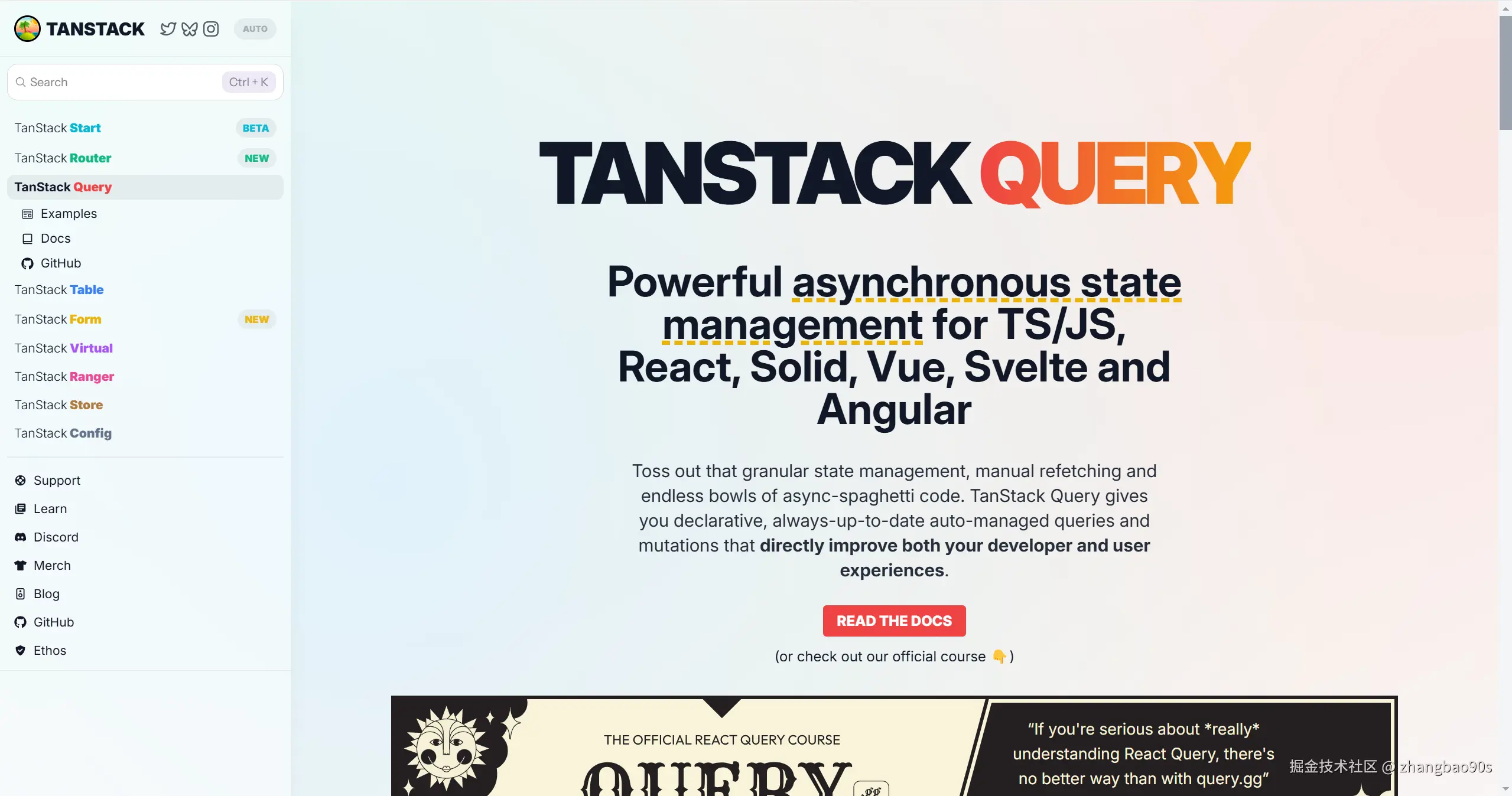 TanStack Query 并没有把自己定位成只是一个状态管理库,它主要是提供了 API 来获取远程数据,但会对获取到的数据进行状态管理(比如:缓存、乐观更新(optimistic updates))。