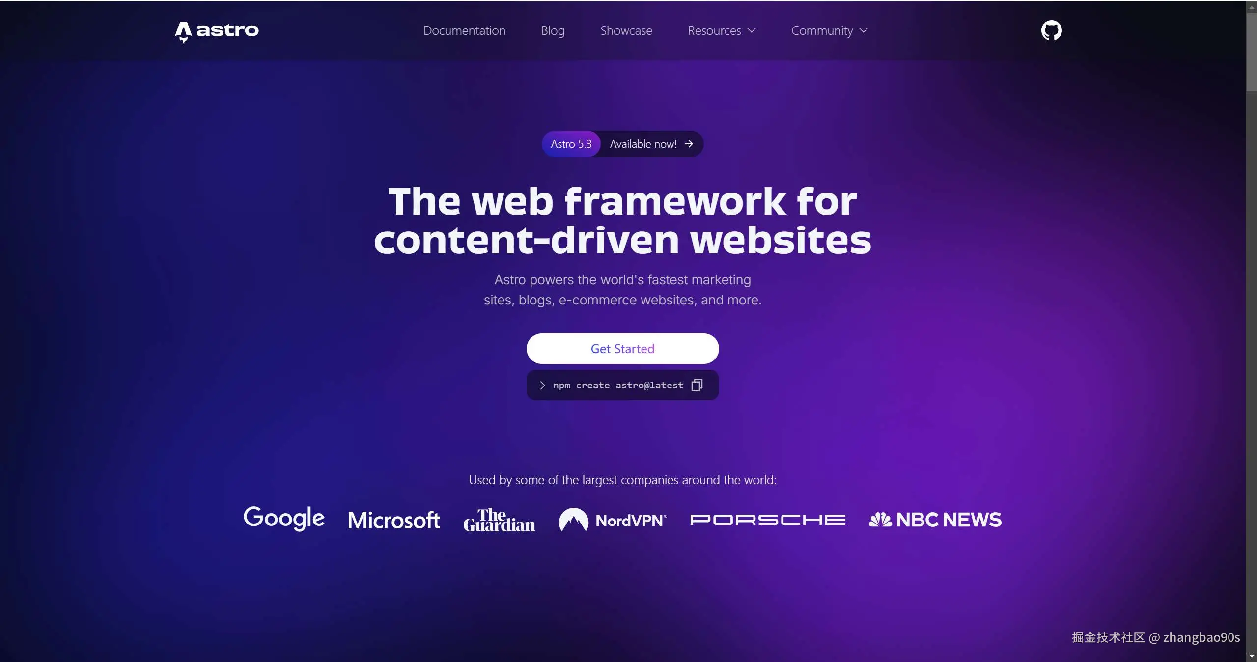 如果静态内容的性能是你的首要考虑因素,可以看看 Astro。它作为一个与框架无关的工具,能与 React 无缝协作,即使在使用 React 构建组件时,也只会向浏览器发送 HTML 和 CSS。只有当组件需要交互时才加载 JavaScript,从而确保最佳性能。