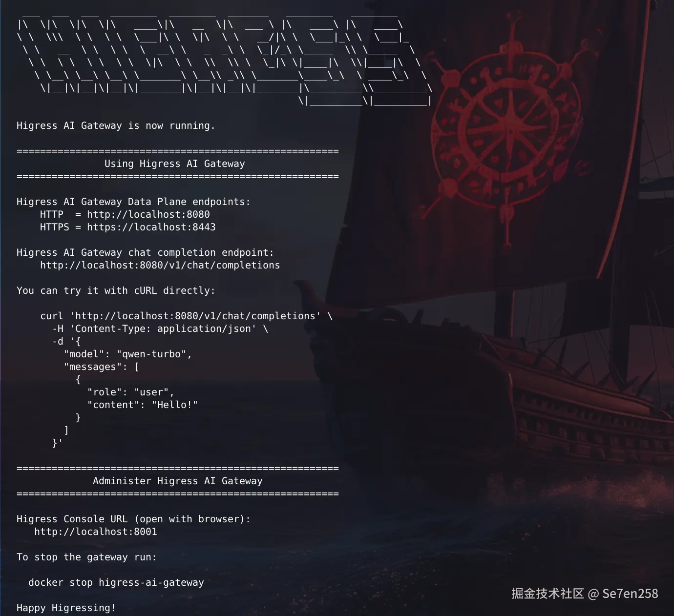 看到以下界面就表示 Higress AI 网关已经成功启动了。