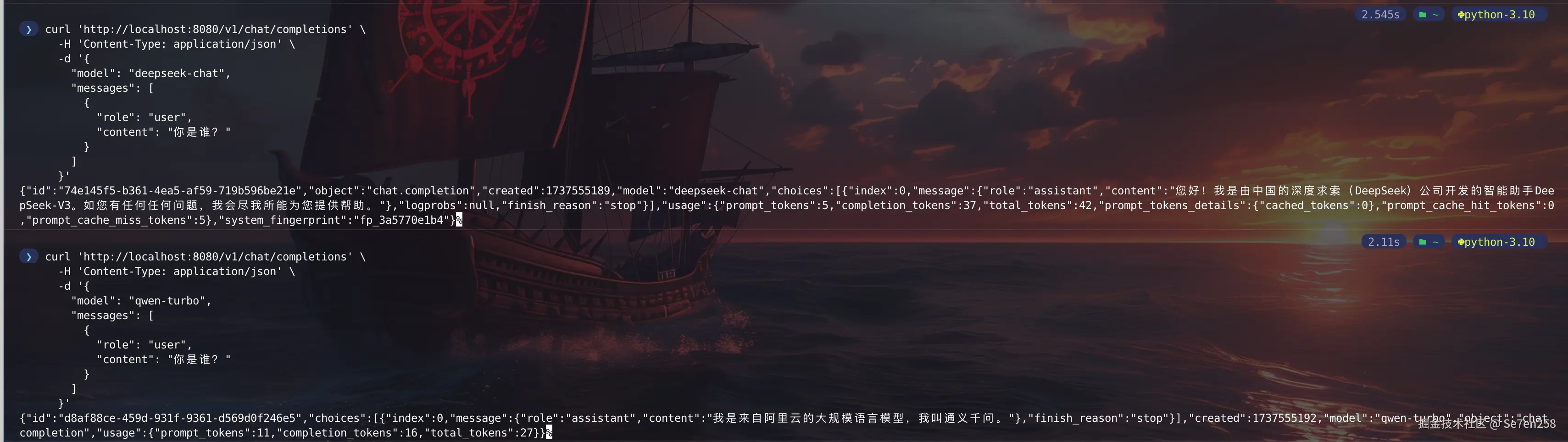从响应内容可以看出,这个请求最终是由 DeepSeek 处理的,说明我们设置的模型降级功能已经生效。