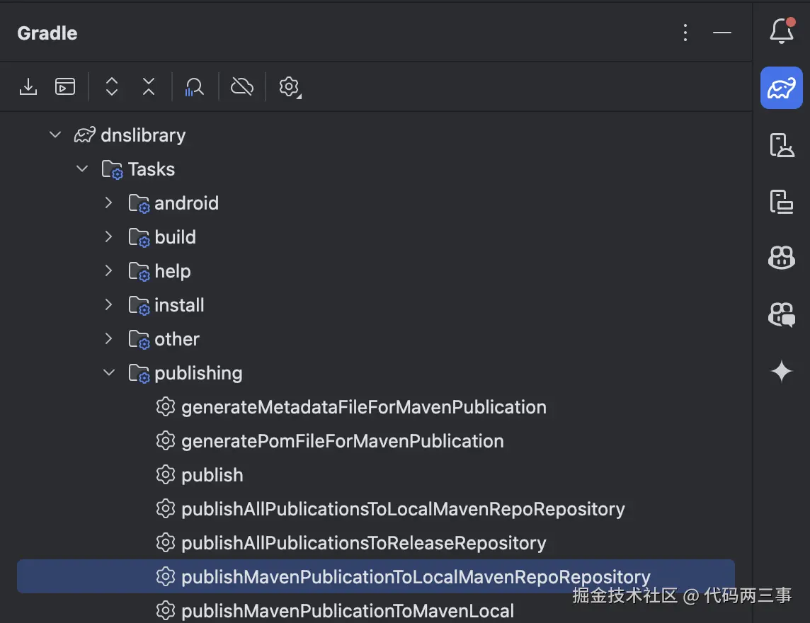 命令行发布:./gradlew :dnslibrary:publishMavenPublicationToLocalMavenRepoRepository