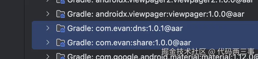 implementation(platform("com.evan:library-BoM:1.0.0")) implementation("com.evan:dns") implementation("com.evan:share")同步项目后发现External Libraries 中:
