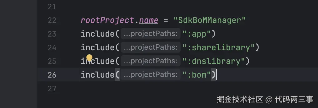 在项目的根路径下找到 settings.gradle.kts,在其中加一句include(":bom") 即可。