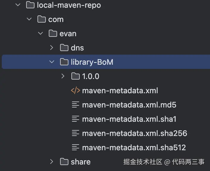 在我们的本地仓库中就能看见发布过去的 BoM project: