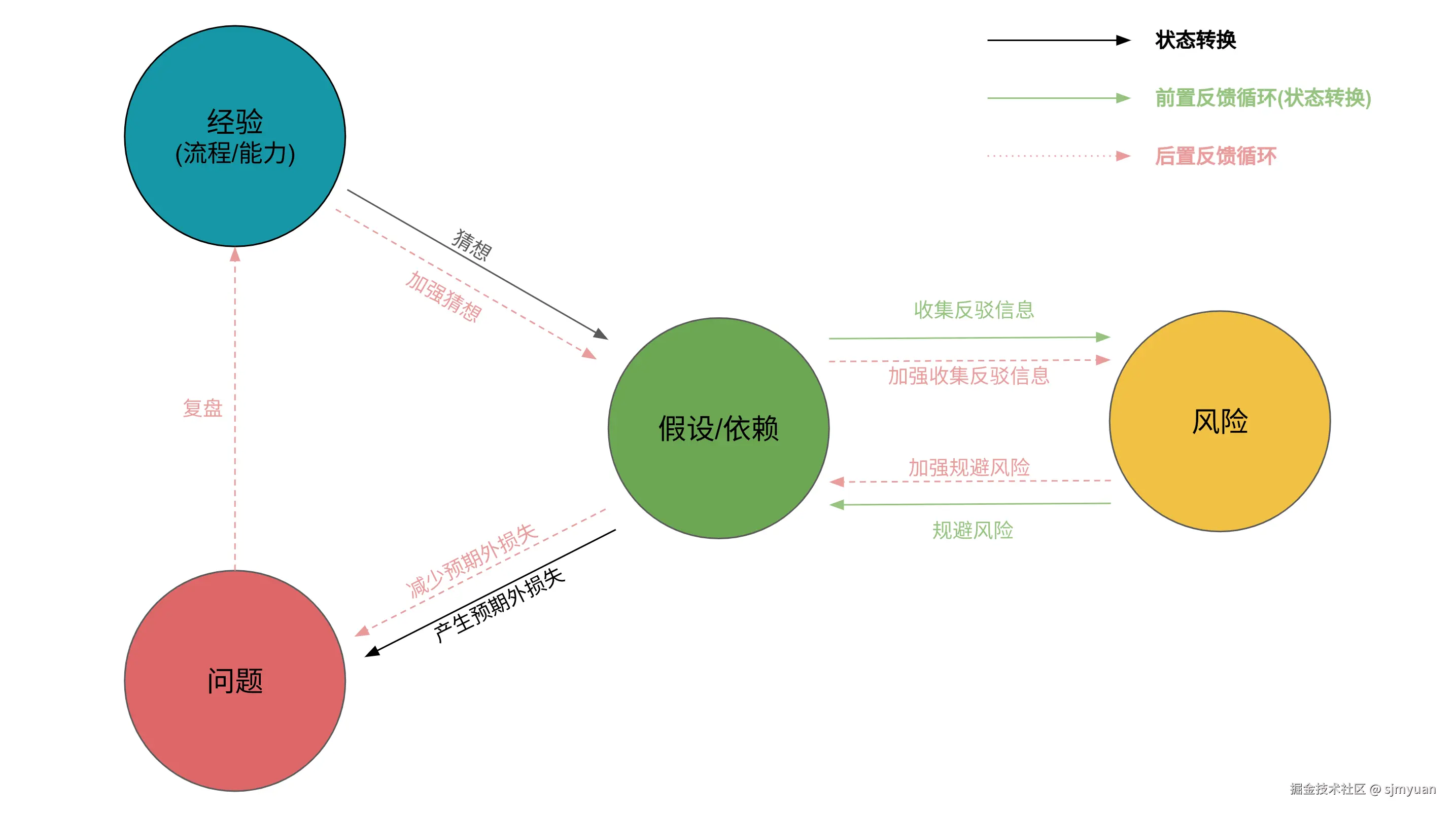 我们无法保证关注所有的假设和依赖,也无法保证所有被关注的假设和依赖是正确的,所以总是会有问题产生。我已经在《如何处理未知问题?》中讨论过这种情况,我们能做的就是通过降低损失和建立后置反馈循环来应对这些未知问题。