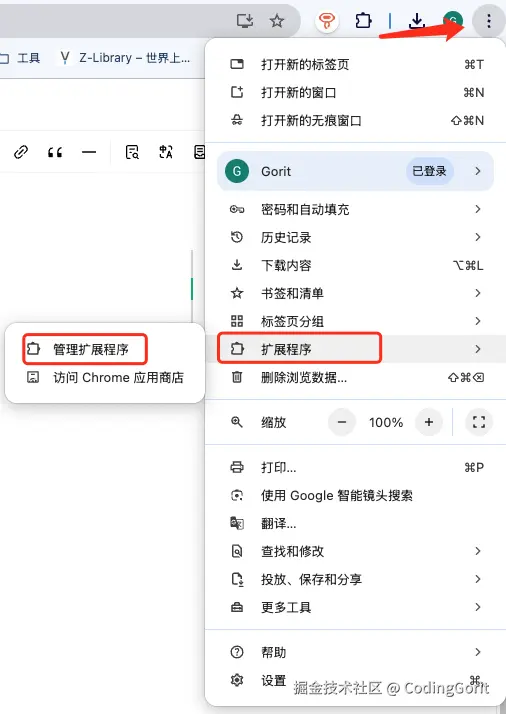 chrome://extensions/并按回车键,这将直接带你到Chrome的扩展程序管理界面。 - 或者,点击右上角的三个点(更多操作)> 更多工具 > 扩展程序。
