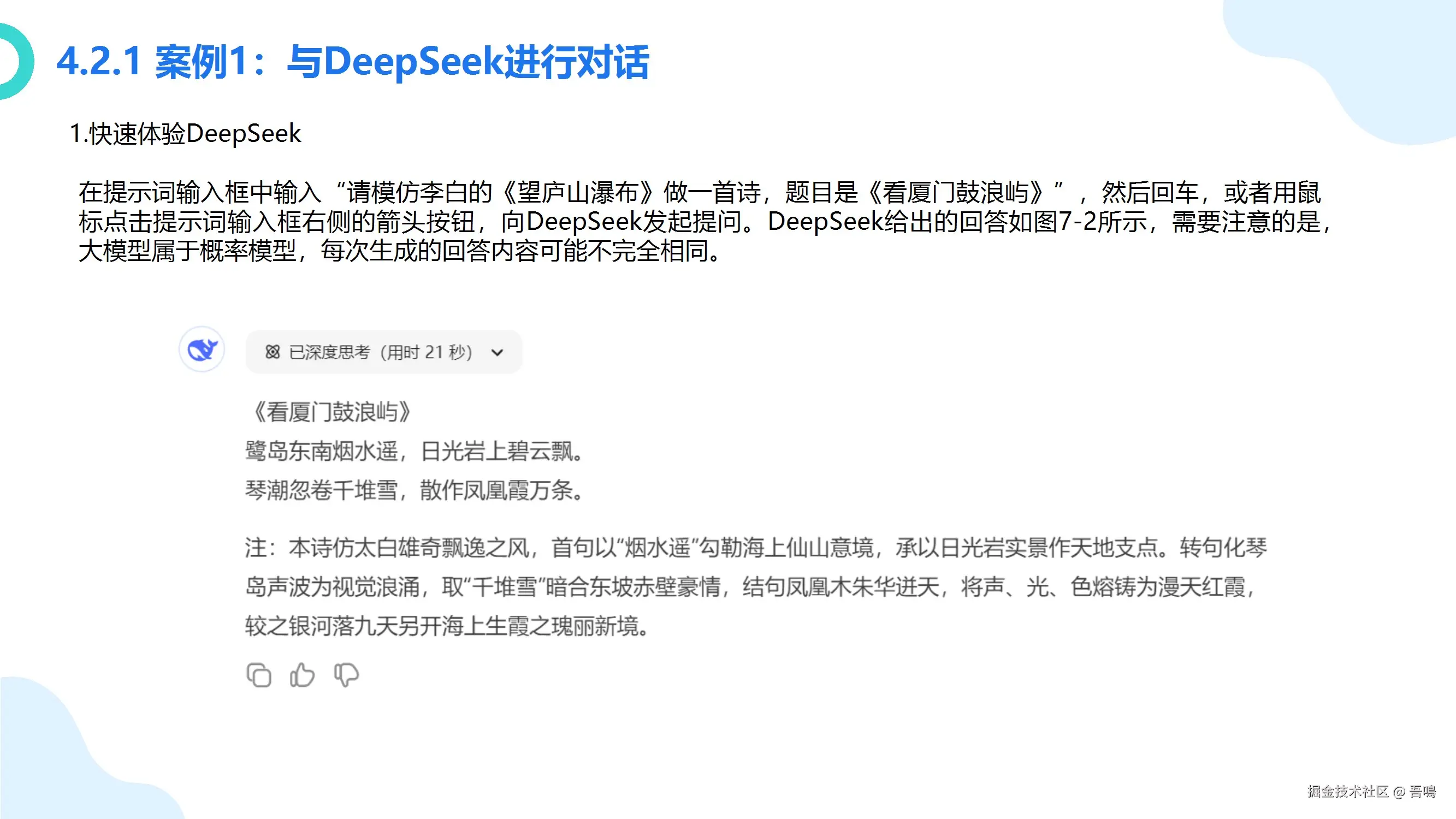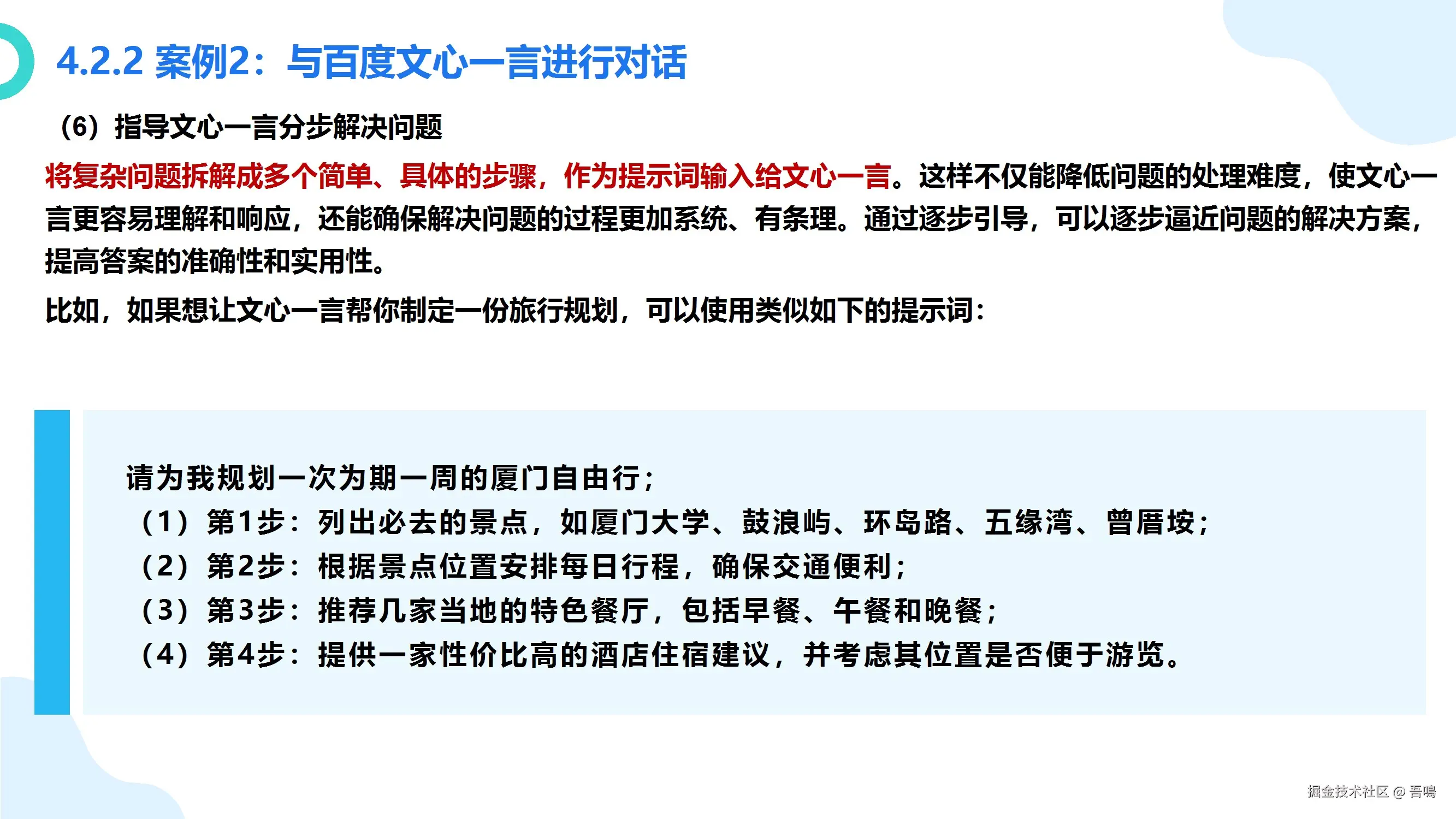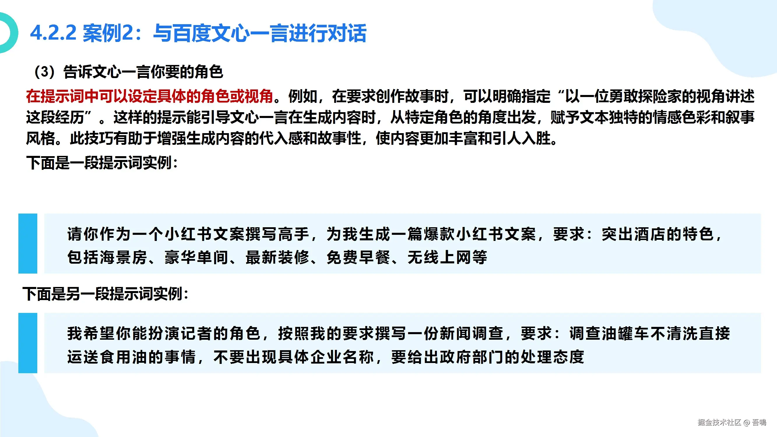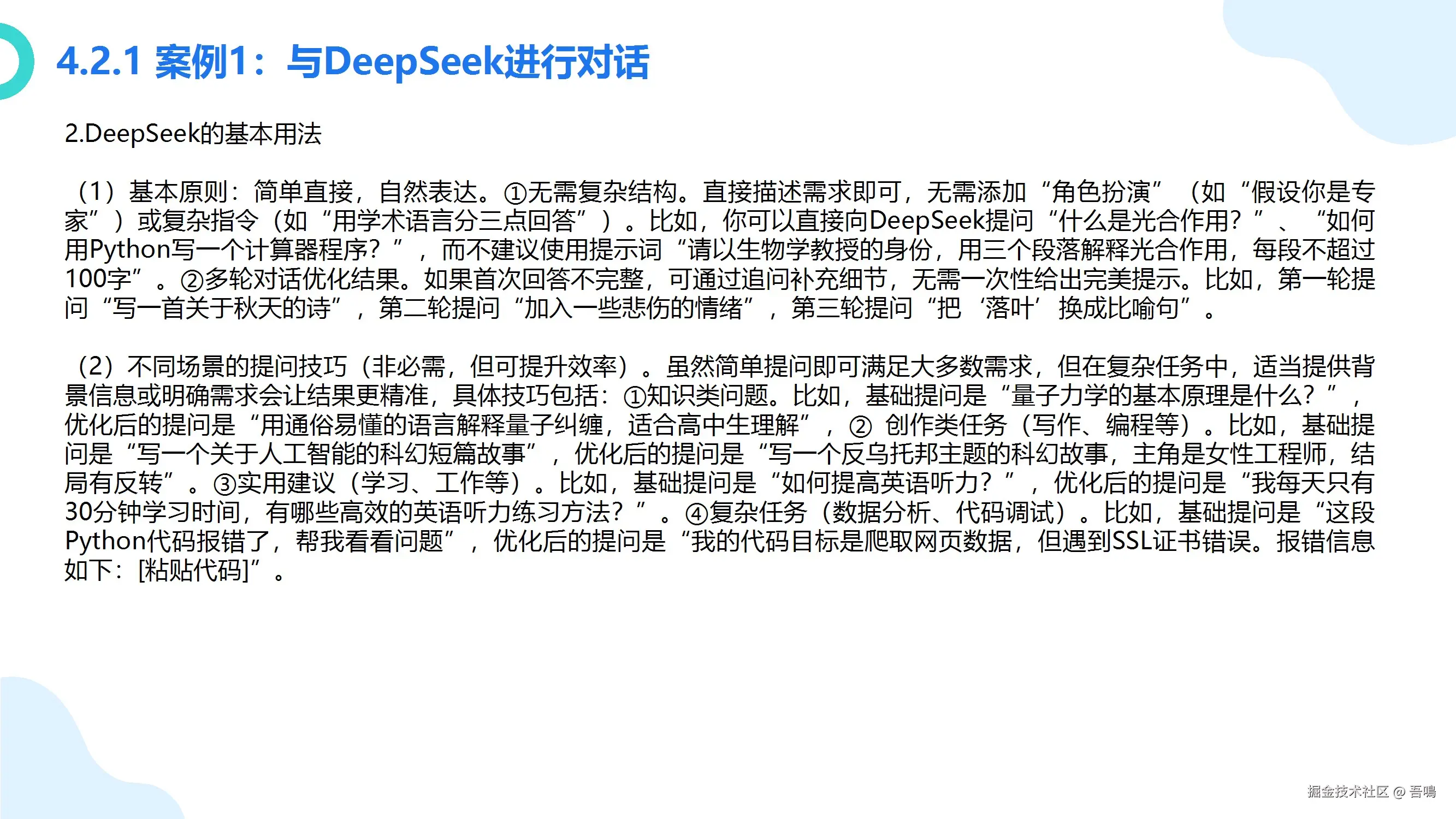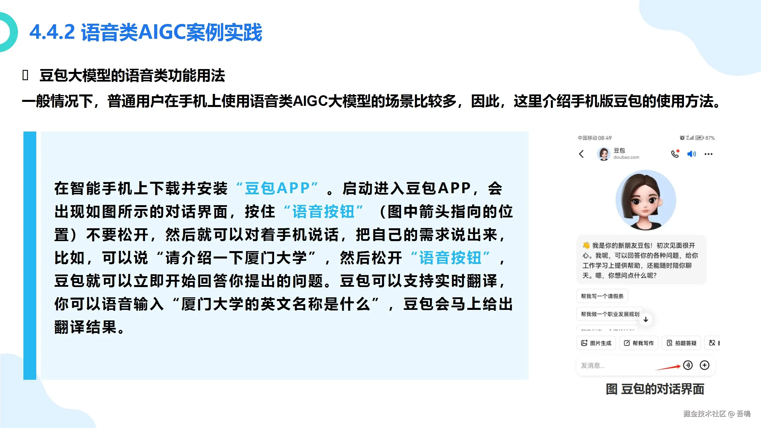 第四部分:AIGC的应用和实践。 这一章节详细介绍了第三章中介绍到的国内外大模型产品的使用方法(包括文本类、图片类、语音类、视频类、编程辅助类),满满的干货,包括应该怎么样和这些不同类型的大模型交互,对不同的大模型应该怎么样去提问。教程中附有大量的使用例子,一看就懂。比外面一些付费的教程讲解得都要清楚。