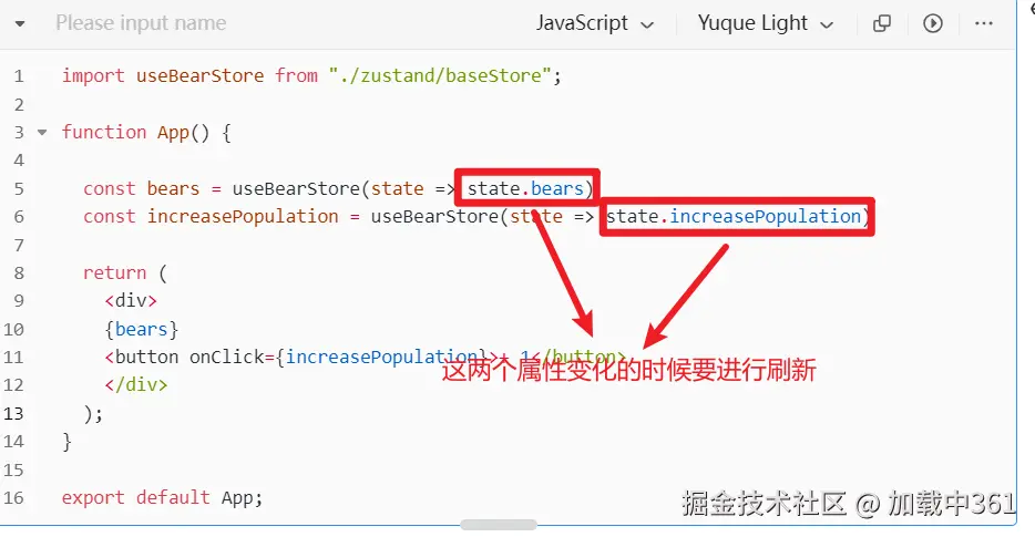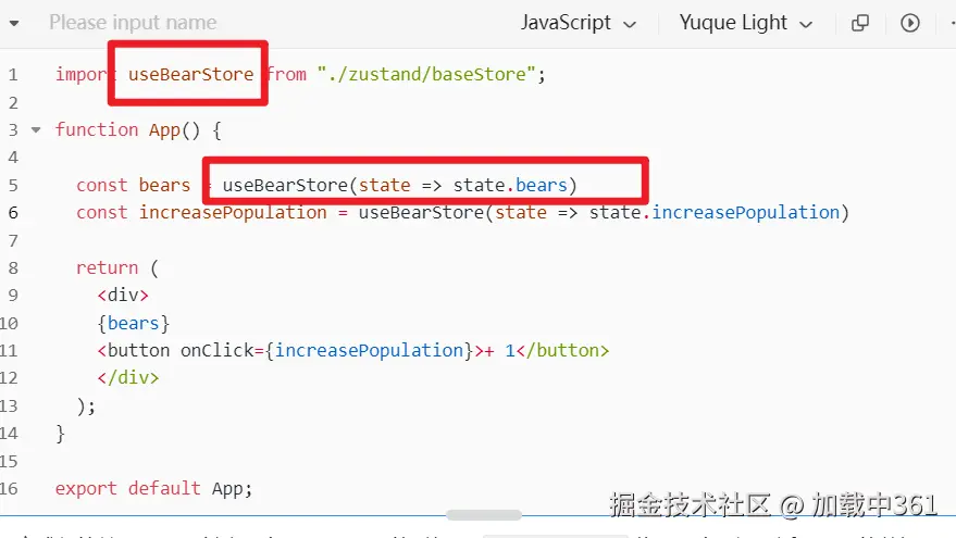 使用方式很简单,只需要创建一个store,使用的时候用 useBearStore传入一个回调,返回需要的数据即可。