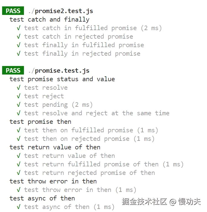 下面我们正式写 promise 的测试代码: promise.test.js: