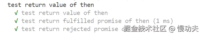 代码中写了三个测试用例,用来测试 promise 的 status 以及 value。