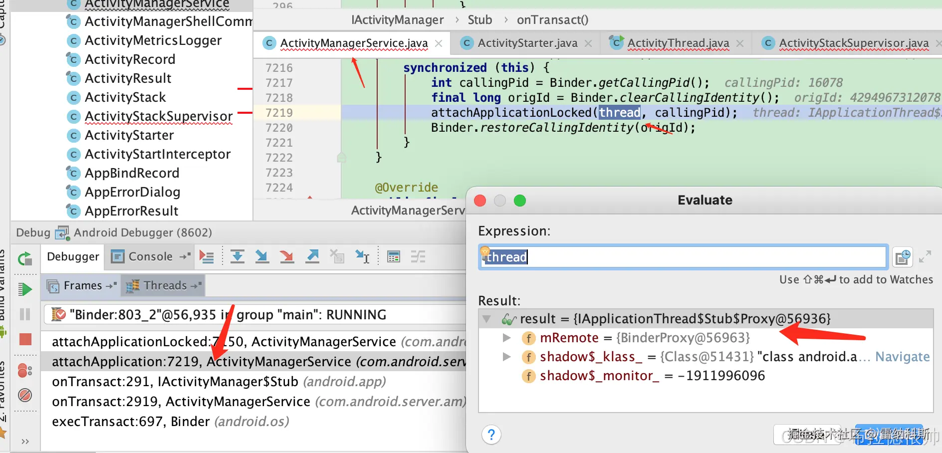 从这一刻就是进入到AMS里面,也就是说进入到了system_server进程里面了,