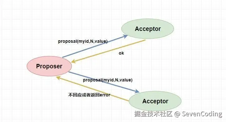 Proposer提案者:负责提出 proposal,每个提案者在提出提案时都会首先获取到一个 具有全局唯一性的、递增的提案编号 N,即在整个集群中是唯一的编号 N,然后将该编号赋予其要提出的提案,在第一阶段是只将提案编号发送给所有的表决者。