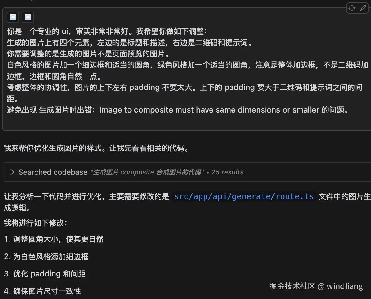 ui 的调整方面 ai 还不太擅长,可能会遇到改对了 B,又把之前改好的 A 搞没了。应对这种情况我们可以把需要的需求一次性描述给它。发现不符合,不要继续对话,而是编辑原来的输入词让它重新来过。