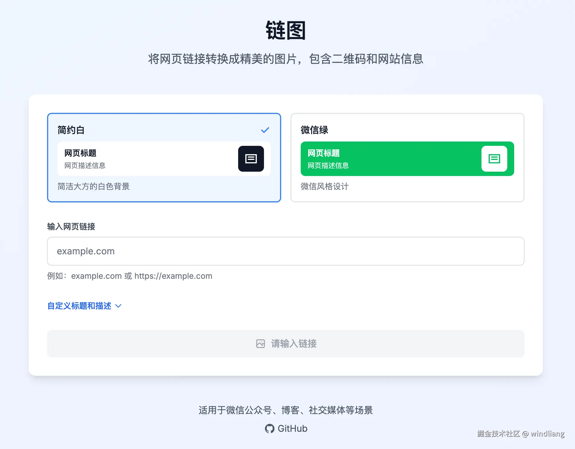 - 功能:将链接转换为包含二维码、网站标题、网站简介的图片