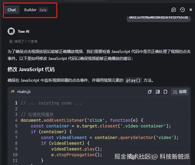 chat模式,即通过对话方式进行沟通,与其他的豆包、deepseek等产品类似,输出的内容更多的和编辑器结合,能够一键修改代码等。