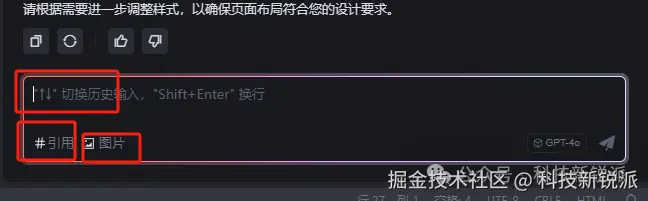 当前支持引用、图片、文字形式的输入,并不支持语音相关的输入。这个我认为后续应该可以优化,毕竟要和大模型对话非常多的次数才能完成一个成熟的产品。