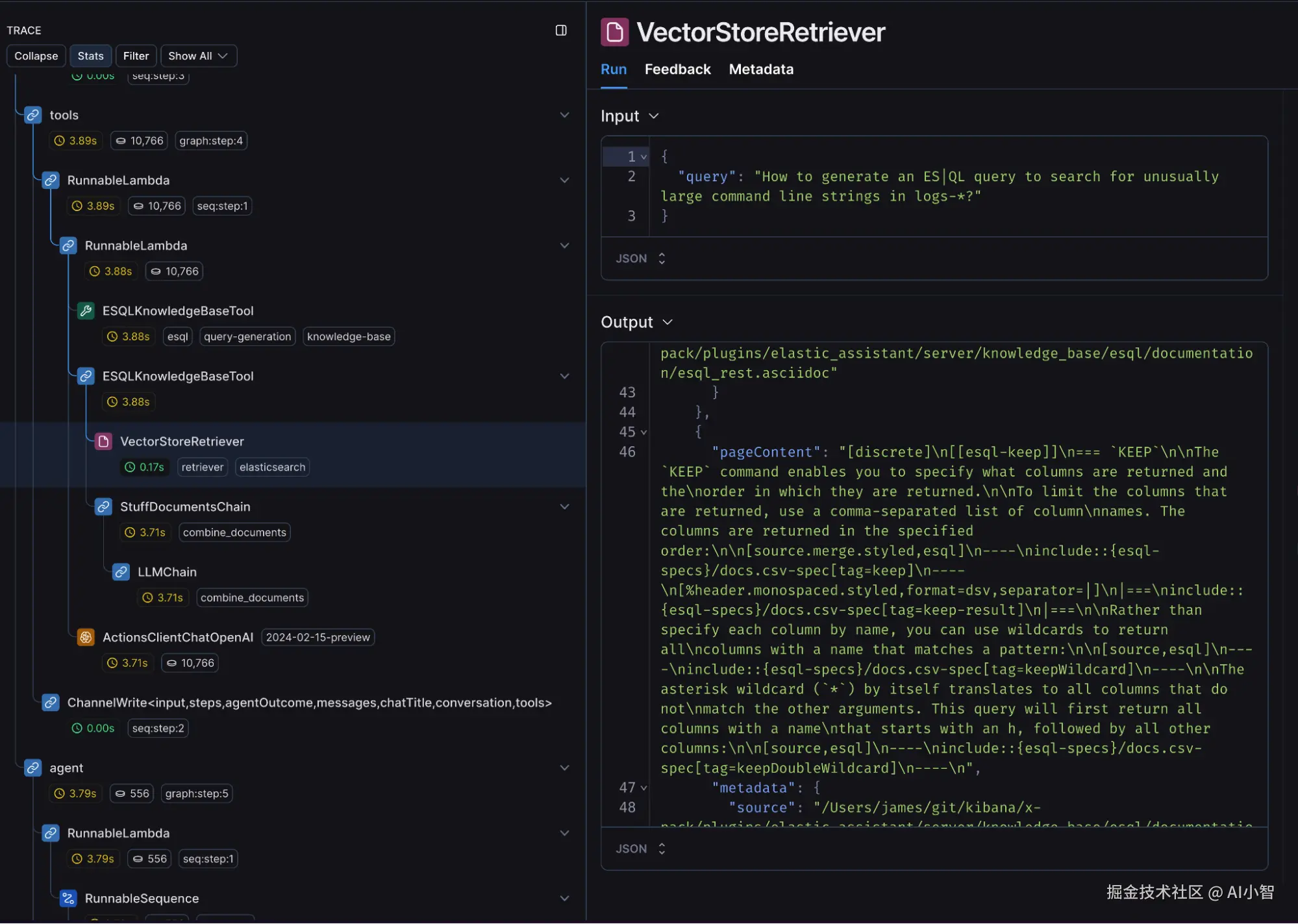 Elastic 在其 AI 助手中引入了增强型可观测性框架,通过详细的追踪数据,实现了对向量检索及数据处理流程的全局监控,确保了系统在高并发场景下依然能够高效运行。