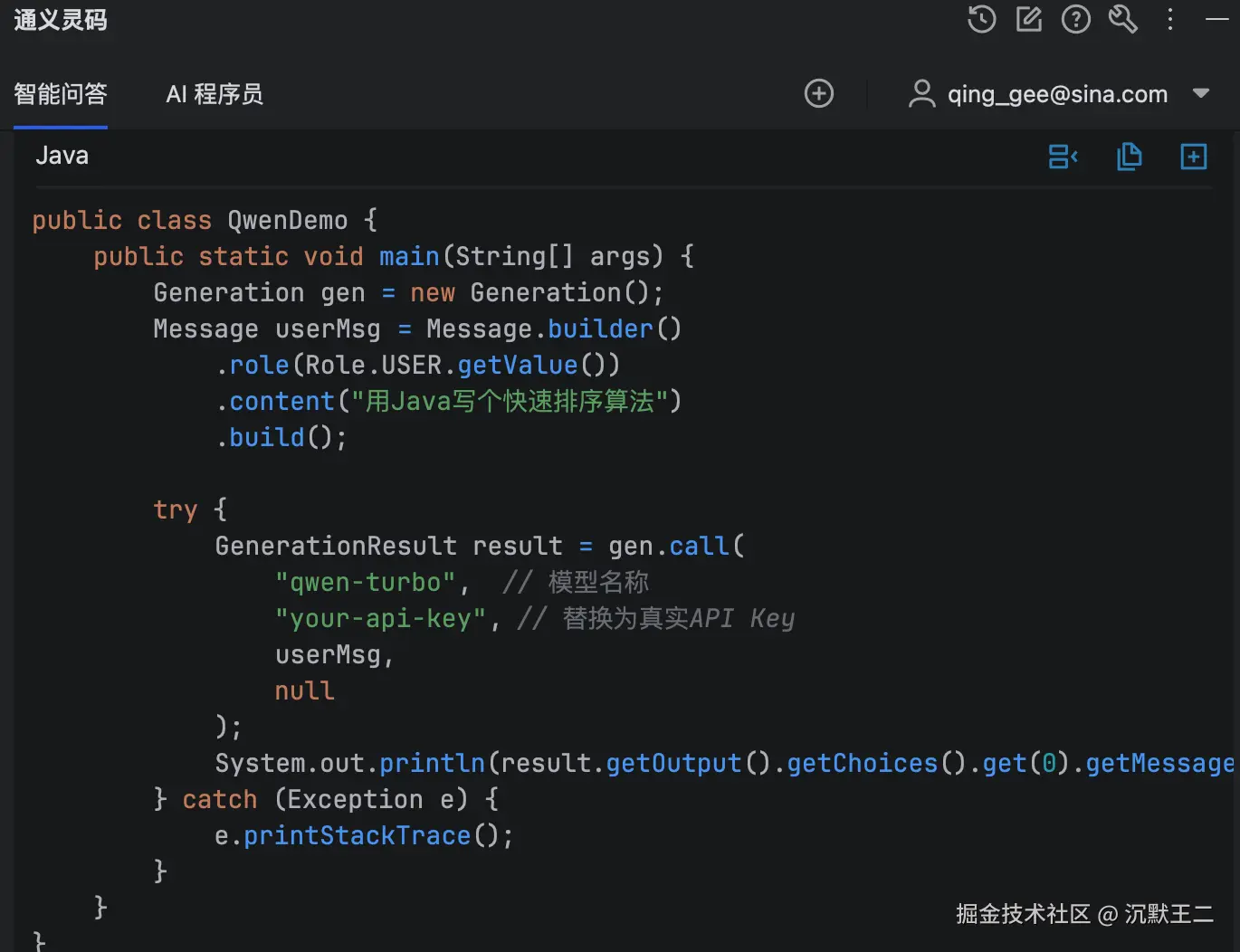 那有了通义灵码这种 AI 编程助手后,问题就迎刃而解了,再也不用复制堆栈去求爷爷告奶奶了。