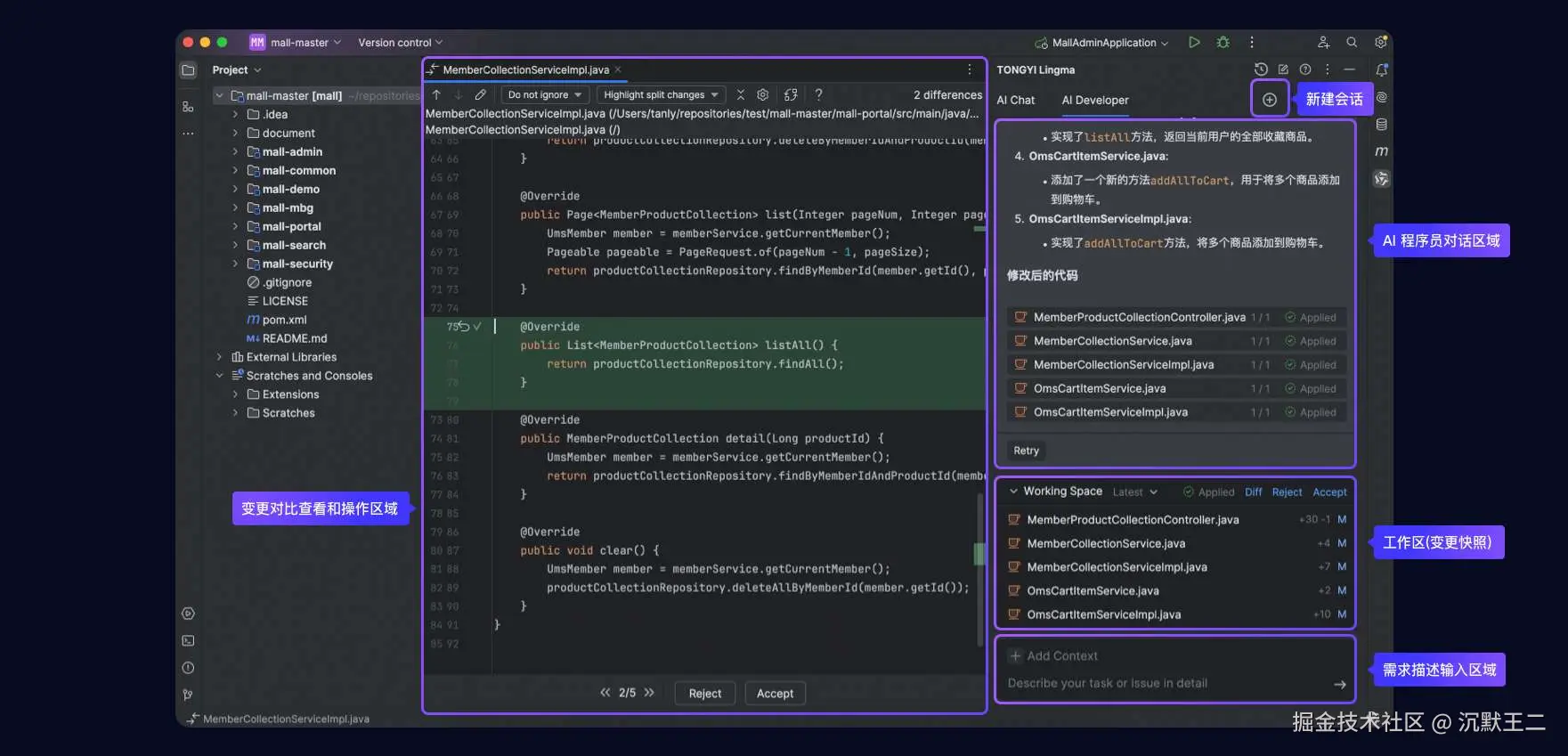 相信大家在前面的截图中,也发现了通义灵码面板中的【AI 程序员】选项,从名字就能看得出来,这是阿里非常大胆的一个尝试。