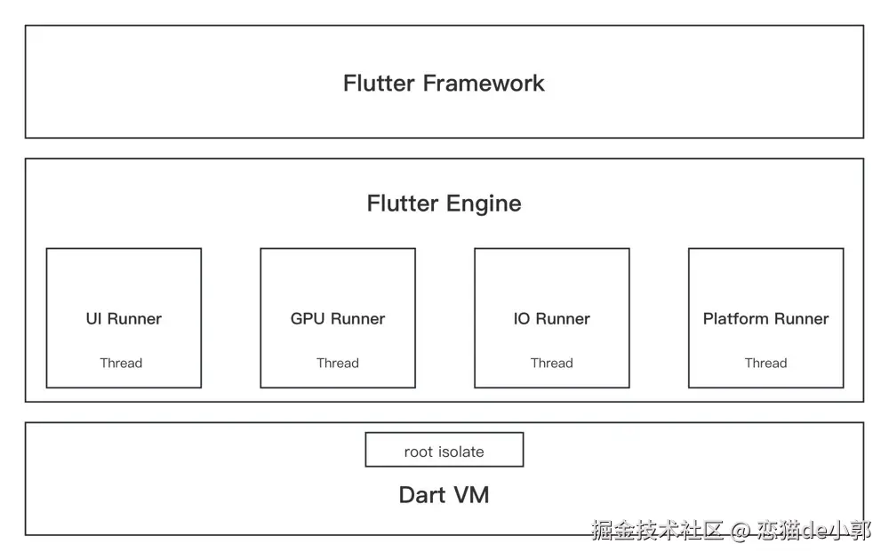 也许一些人对于这个概念还比较陌生,有时间可以看看以前发过的 《深入理解 Dart 异步实现机制》 的相关内容,这里面主要涉及 isolate、 Thread、Runner 等概念。