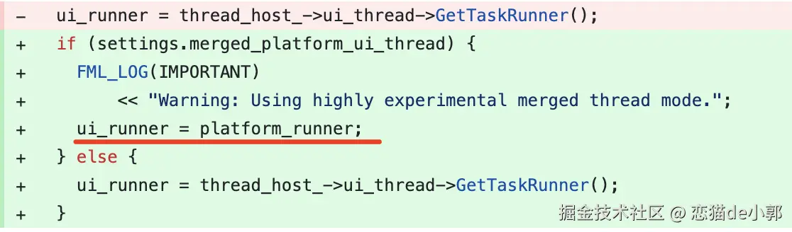 而在 3.29 里,作为改进移动平台上 Native 和 Dart 互操作系列调整中的一部分,两个线程被合并了,说人话就是: UI Runner = Platform Runner :