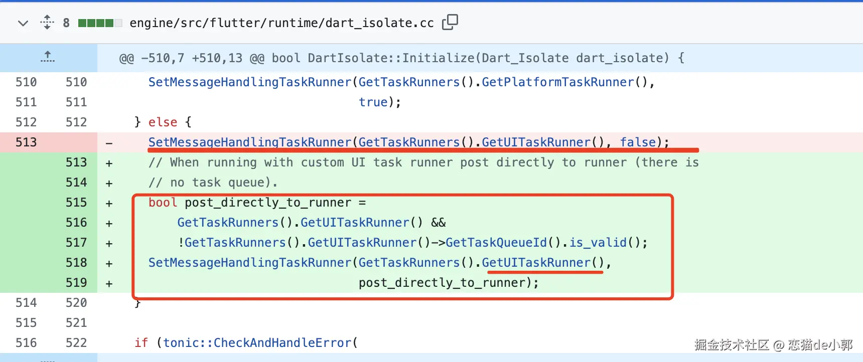 另外,过去 Dart 的 root isolate 是在 SetMessageHandlingTaskRunner 的时候关联上 UI Runner 的,而现在是直接 post_directly_to_runner :