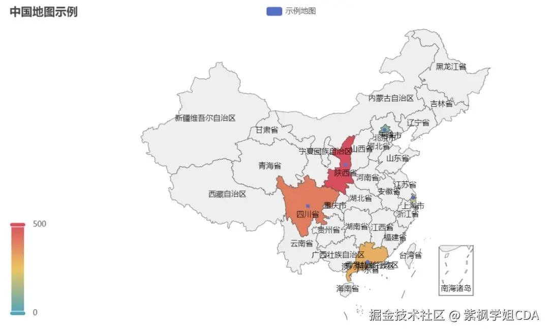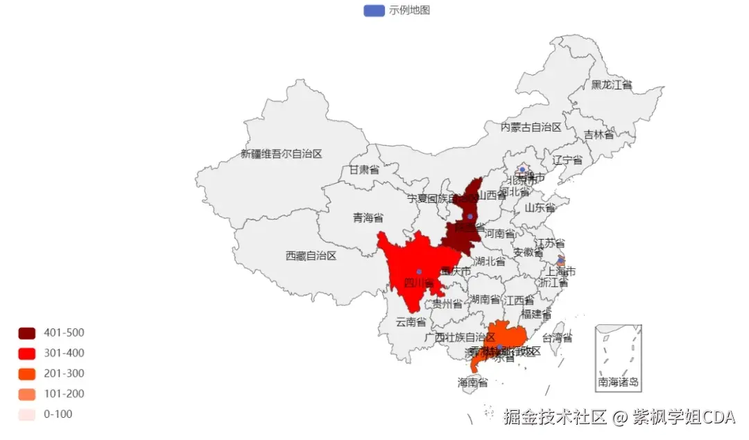 为了让地图更加美观,我们可以设置一些全局配置,例如标题、视觉映射等: