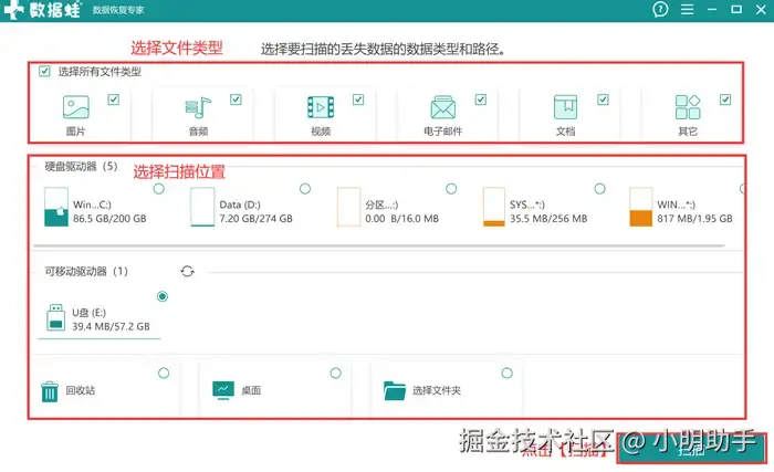使用数据 蛙恢复专家进行电脑数据恢复的具体操作如下: