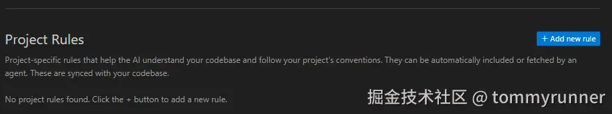 点击add new rule后创建文件.cursor/rule文件,在文件下可以创建单向业务功能规则