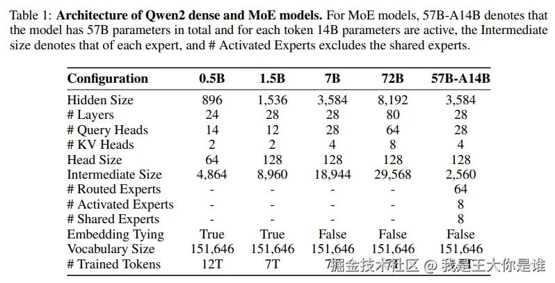 字节级字节对编码的分词器。值得注意的是这种分词器表现出较高的编码效率,其压缩率优于其他分词器,这证明了 Qwen2 的多语言能力。 - 所有大小的模型都使用一个共同的词汇表,包括