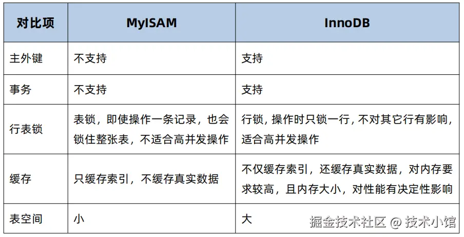 InnoDB和MyISAM有什么区别?