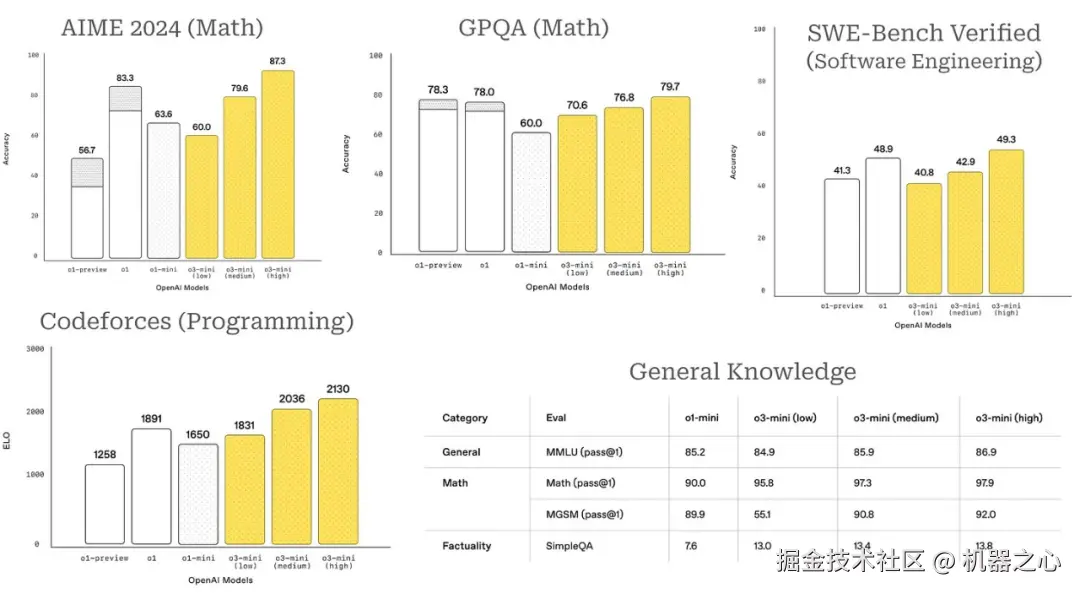 o3-mini 性能详情(来自 [6])