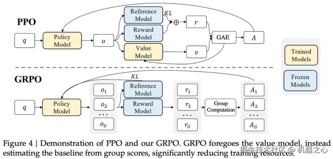 不再需要批评模型,该模型(通常)与策略模型(即 LLM 本身)大小相同。