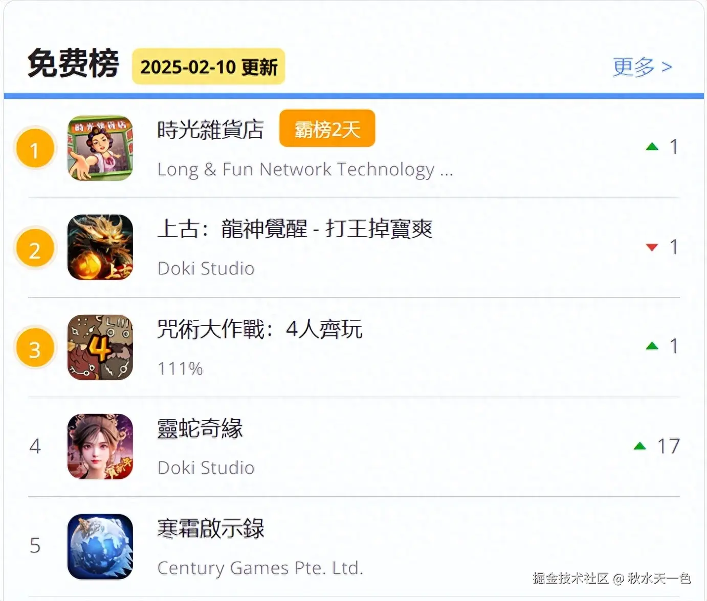 图片来自:广大大-AppIntelligence模块,2025年2月10日中国台湾AppStore游戏免费榜