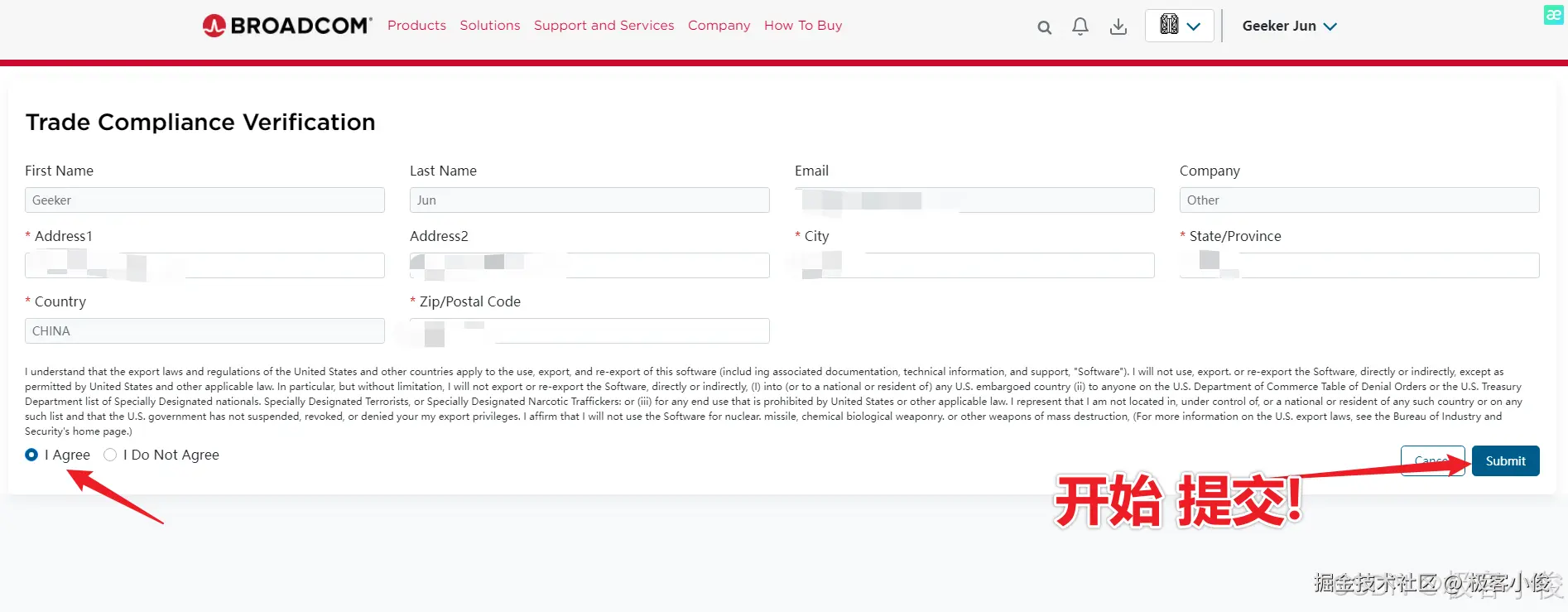 最后可能会让你简单的再次填写一些资料并且同意条款,点击Submit即可!