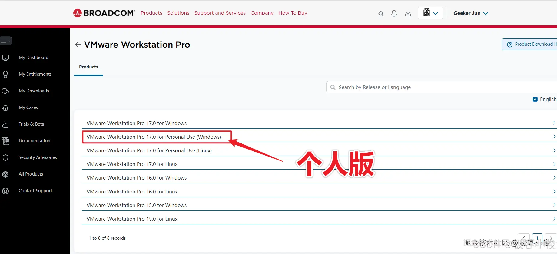 那么这里我选择的是VMware Workstation Pro 17.0 for Personal Use (Windows) 也就是个人版