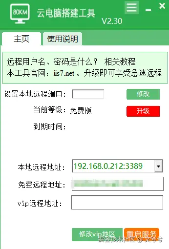 接下来介绍一个更便捷的方式,“个人云电脑工具”是专为云存储搭建而精心打造的一款便利工具,可以帮助您实现从手机,从家里的电脑控制办公室或任意想远程控制电脑的操作。只需成功安装,即可直接使用。从初次邂逅它的界面开始,便能感受到设计者的贴心考量,布局简洁直观,图标标识清晰明确,毫无上手门槛,即便是技术小白也能快速理清操作脉络。