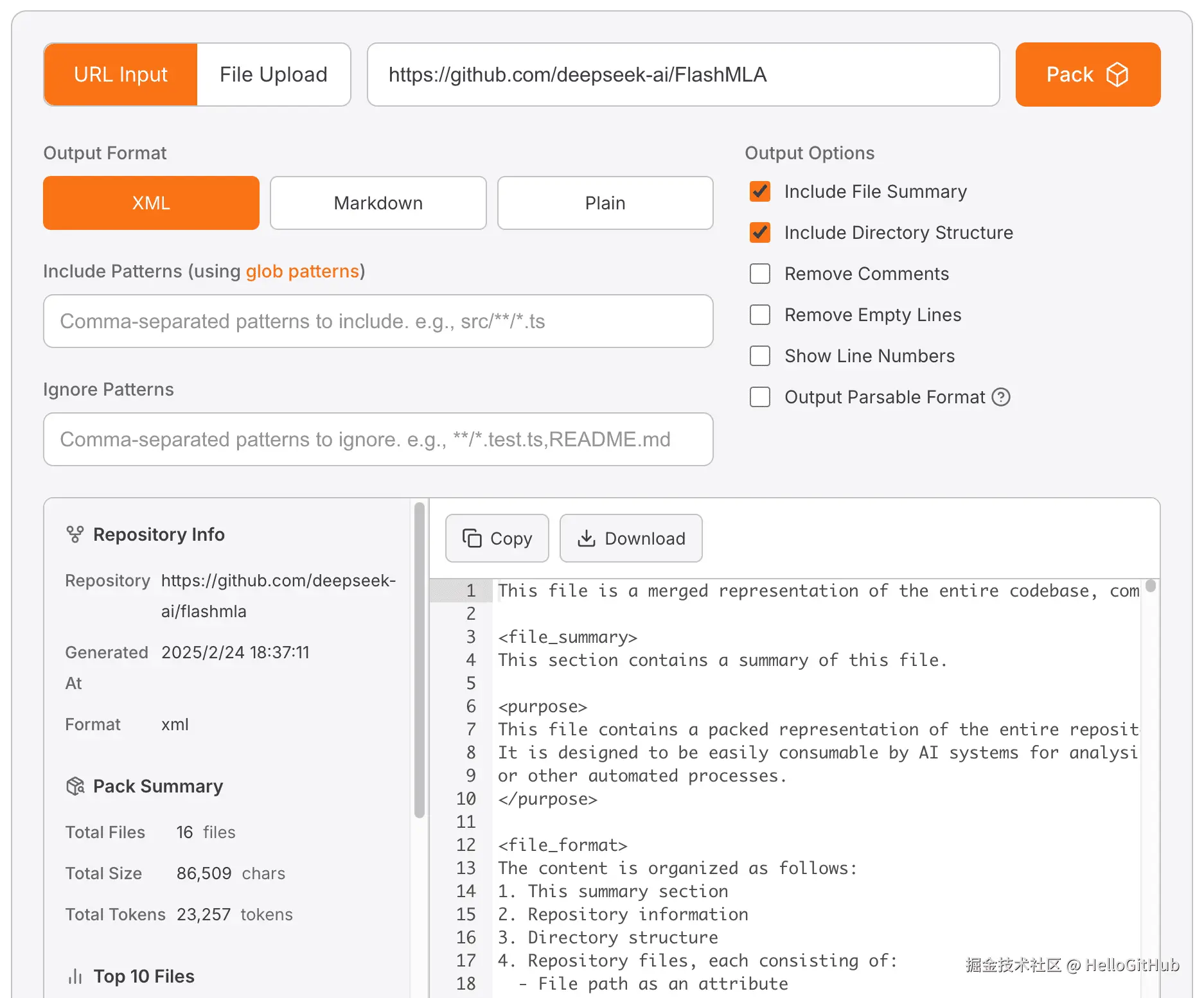 该项目是用于将整个代码仓库打包成适合 AI 处理的单一文件(纯文本、Markdown、XML),支持远程仓库地址和本地仓库。它通过内置的安全检查和代码压缩技术,能够有效减少输出文件的上下文令牌(token)数量,并确保不泄漏敏感信息。生成的文件可以方便地输入到 ChatGPT、Claude、Llama 等 AI 工具中,适用于代码审查、文档生成和测试用例编写等任务。