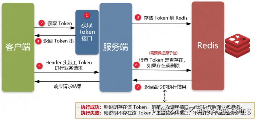 调用方在调用接口的时候先向后端请求一个全局 ID(Token),请求的时候携带这个全局 ID 一起请求(Token 最好将其放到 Headers 中),后端需要对这个 Token 作为 Key,用户信息作为 Value 到 Redis 中进行键值内容校验,如果 Key 存在且 Value 匹配就执行删除命令,然后正常执行后面的业务逻辑。如果不存在对应的 Key 或 Value 不匹配就返回重复执行的错误信息,这样来保证幂等操作。