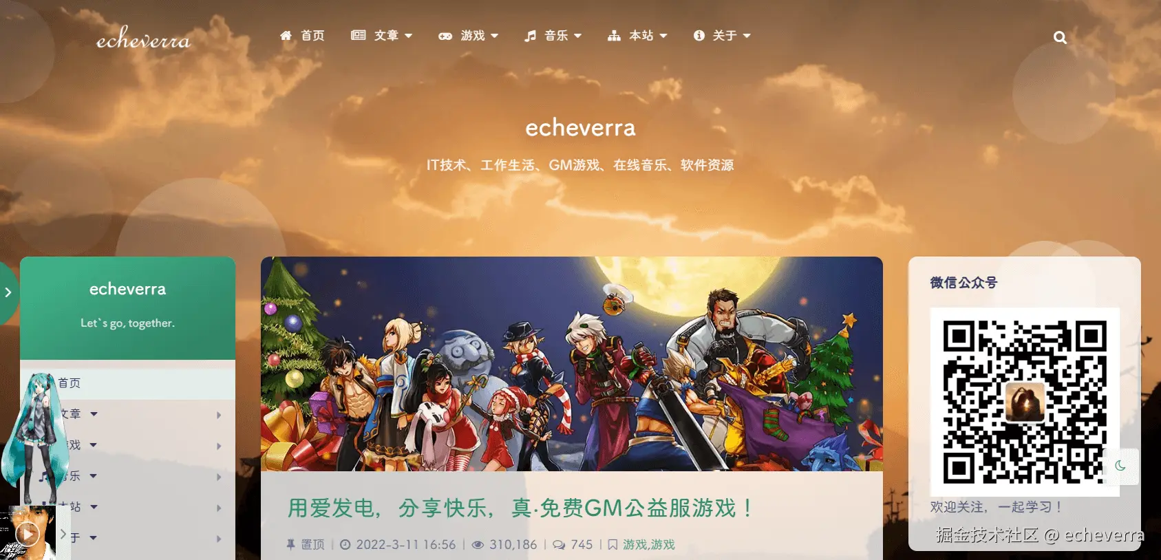 这是我弄巧成拙的副业自媒体的第三个年头,公众号 echeverra,博客:echeverra.cn,从最开始的分享 IT 技术彻底变成了免费 GM 公益游戏。2024 年一共发表了 19 篇原创文章,基本是月更,新出了 16 款游戏。