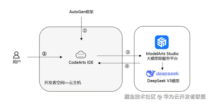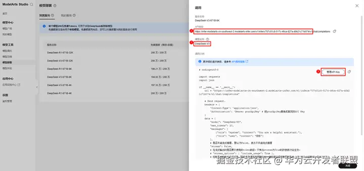 ④ 调用ModelArts Studio预置DeepSeekV3模型;